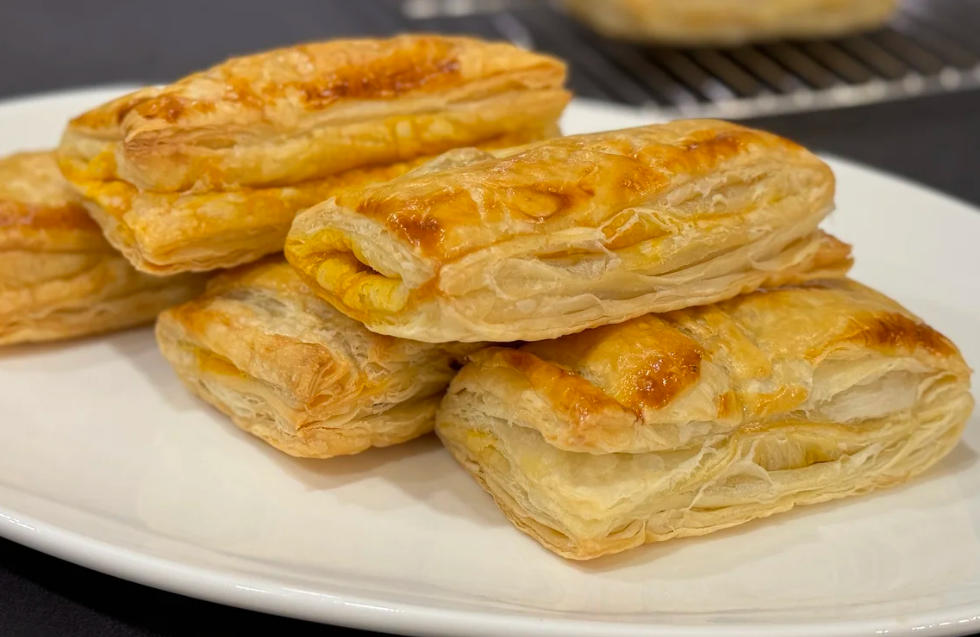 Filled with juicy, tender chicken cooked in a bold chilli sauce with onions, capsicum, and aromatic spices, this savory delight is wrapped in layers of golden, buttery puff pastry